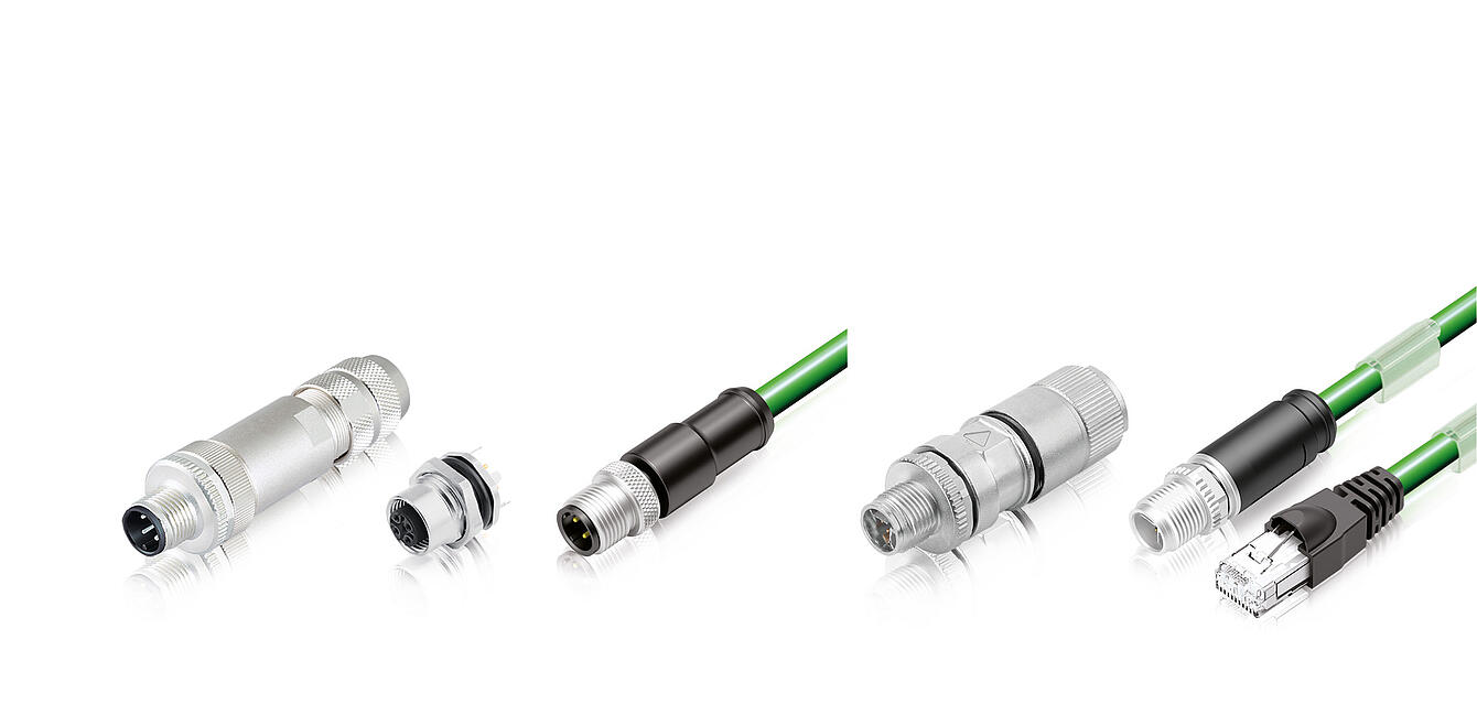 - Ensures reliable Ethernet connections, including M12 D coded and M12 X coded options for 100 Mbit and 10 Gbit Ethernet.