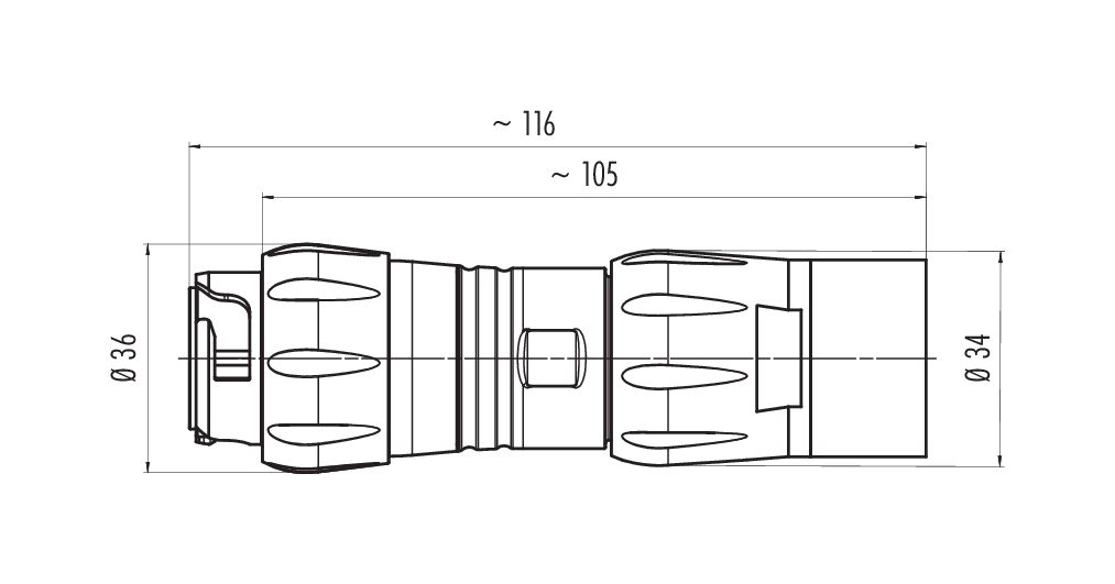 | Diseño de conector | Conector de cable macho |