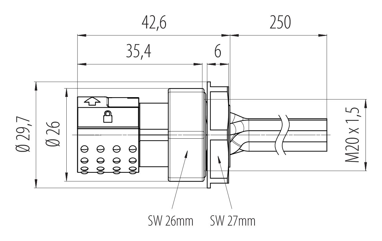 - Para bloquear el conector del cable con el conector del dispositivo, el anillo roscado se aprieta "apretado con la mano"(aprox. 60 cNm).