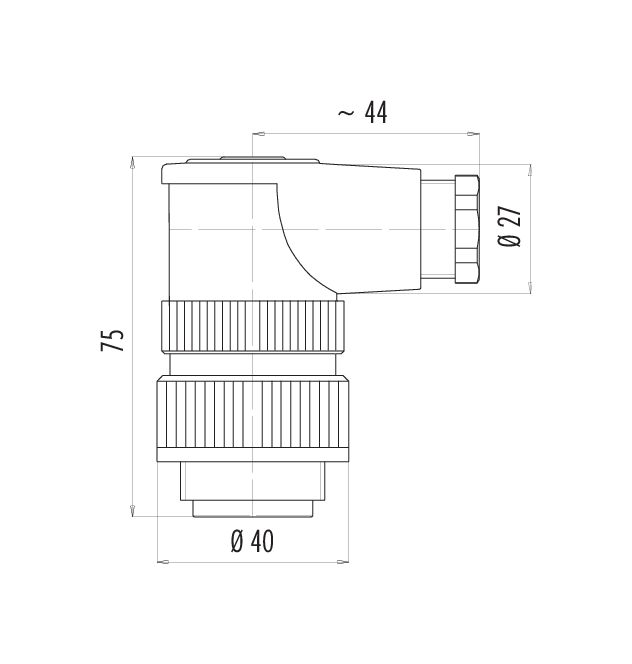 | Diseño de conector | Conector macho en ángulo |