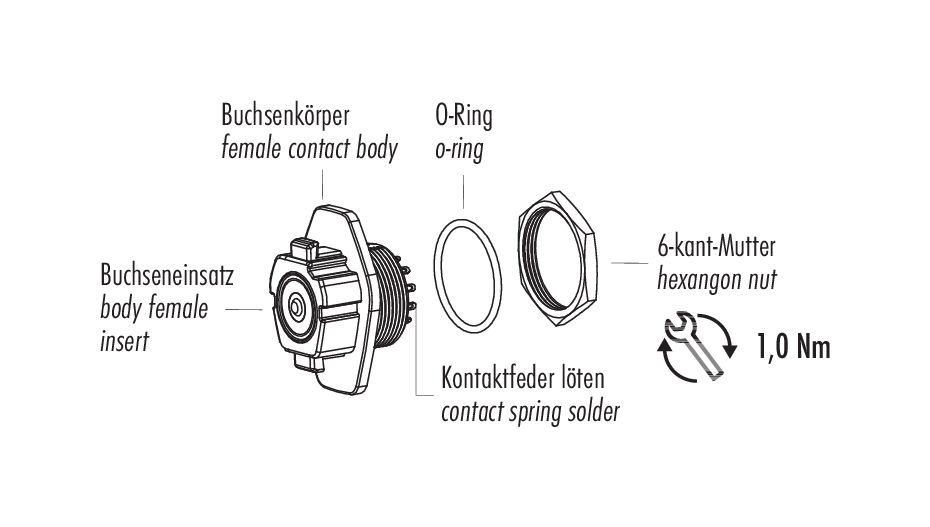 - Para bloquear el conector del cable en el conector del dispositivo, recomendamos apretar el anillo roscado a 1 Nm. Hay disponible una llave dinamométrica adecuada como accesorio (nº de pedido 07 0082 000).