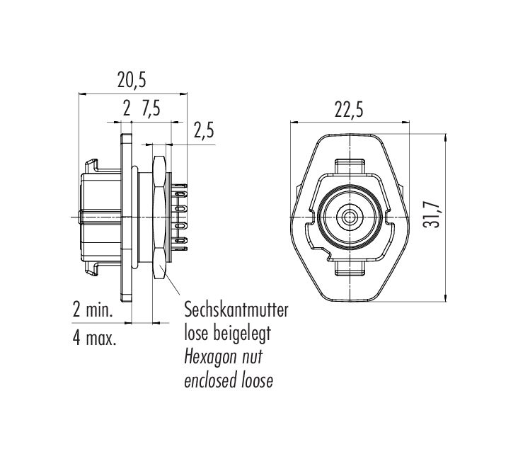 Snap-In Toma de brida, Número de contactos: 12, sin blindaje, soldadura, IP54, Montaje frontal