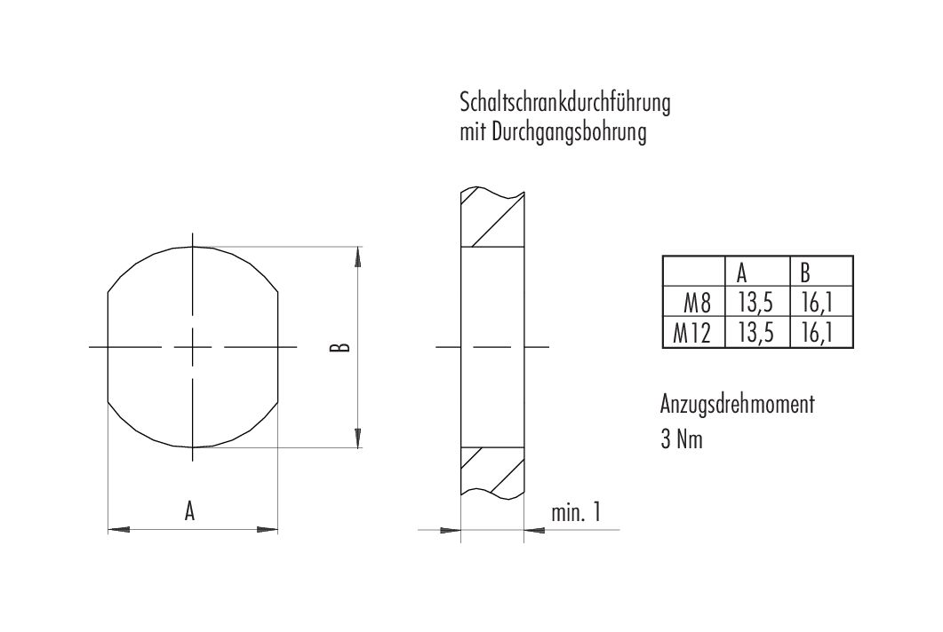 M12 Casquillo del armario de distribución, 2,5-4,0 mm, blindado, soldadura, IP40, Montaje en pared