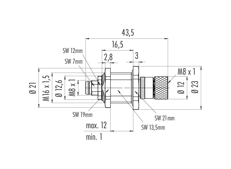 M8 Casquillo del armario de distribución, Número de contactos: 3, blindado, enchufable, IP67, M8x1,0, Montaje en pared