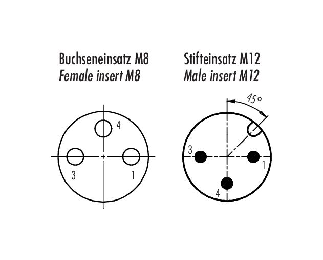 M12/M8 Adaptador, Número de contactos: 3, sin blindaje, enchufable, IP67
