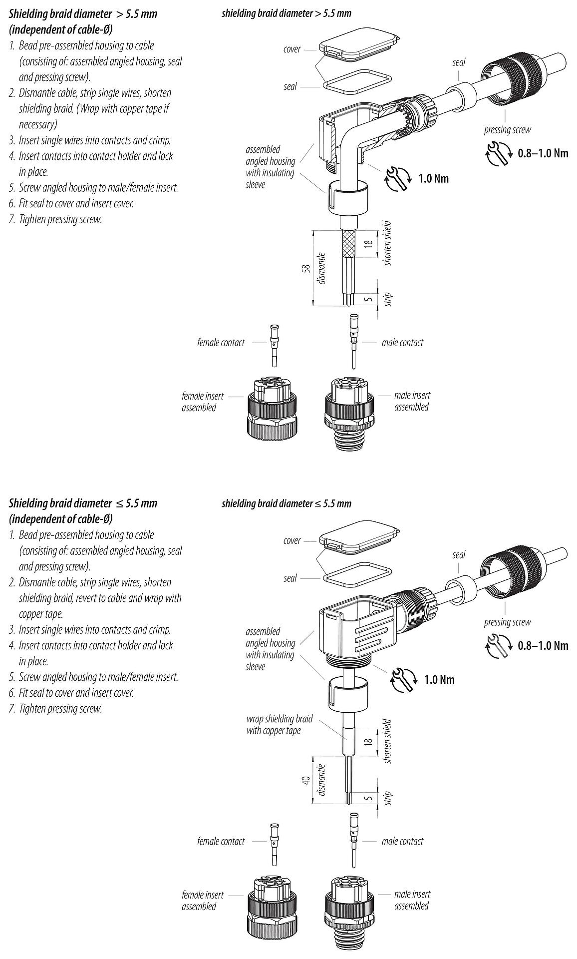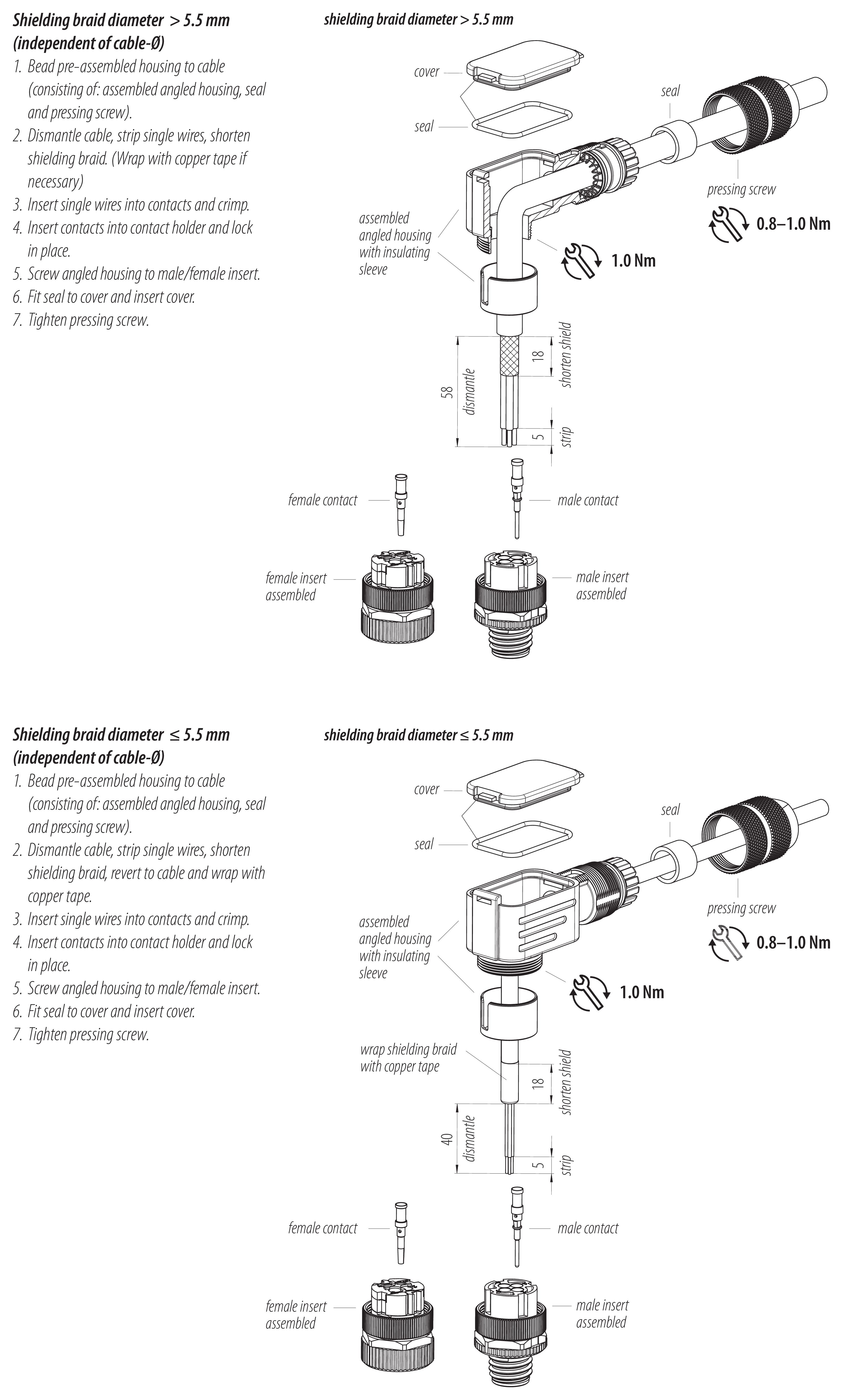 - Para proteger contra la apertura involuntaria del conector, la rosca entre la carcasa y la cabeza del conector debe asegurarse con un adhesivo de cianoacrilato adecuado cuando se use en circuitos con voltajes peligrosos al tacto. Esto no se aplica a los conectores utilizados en circuitos SELV y PELV según IEC 61140 (EN 61140, VDE 0140-1).