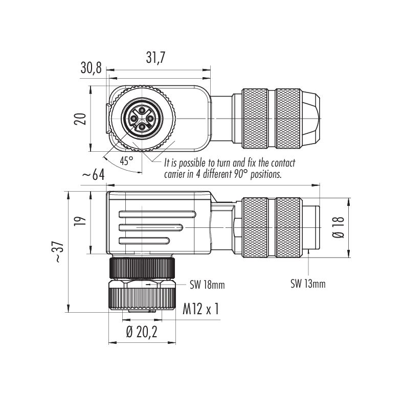 | Torcionabilidad | 90° (4 opciones de codificación) |