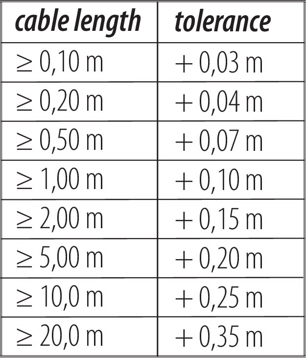 | Cable de rango de temperatura fijo de / a | -50 °C / 90 °C |