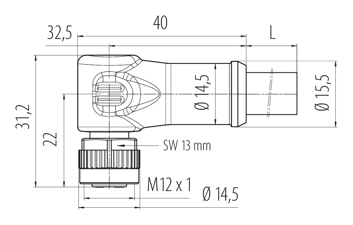 - Para bloquear el conector del cable con el conector del dispositivo, el anillo roscado se aprieta "apretado con la mano"(aprox. 60 cNm).