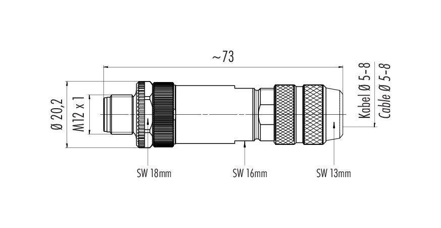 M12 Conector de cable macho, Número de contactos: 4, 5,0-8,0 mm, blindable, crimpado (los contactos de crimpado deben pedirse por separado), IP67