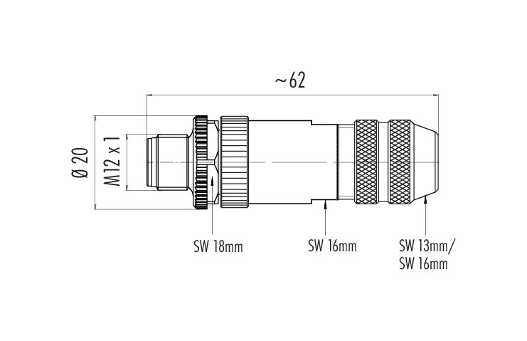 - Para proteger contra la apertura involuntaria del conector, la rosca entre la carcasa y la cabeza del conector debe asegurarse con un adhesivo de cianoacrilato adecuado cuando se use en circuitos con voltajes peligrosos al tacto. Esto no se aplica a los conectores utilizados en circuitos SELV y PELV según IEC 61140 (EN 61140, VDE 0140-1).