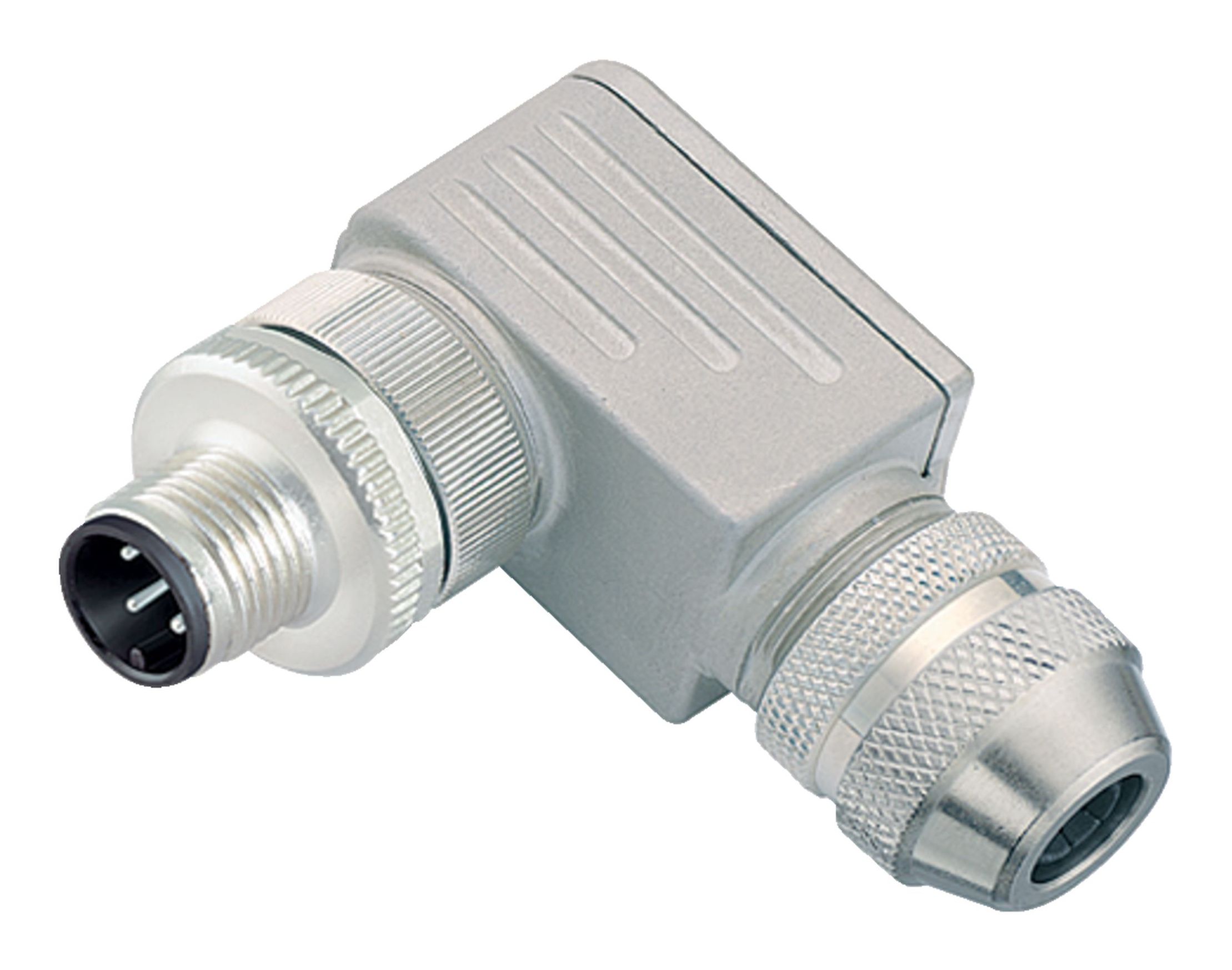 M12 Conector macho en ángulo, Número de contactos: 4, 6,0-8,0 mm, blindable, tornillo extraíble, IP67, UL 2238, con anillo de protección