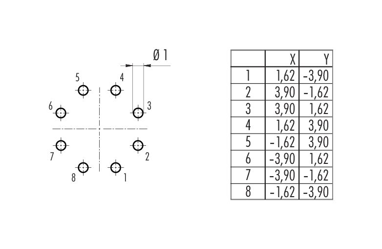Bayoneta Toma de brida, Número de contactos: 8, sin blindaje, soldadura, IP67, M13x1,0, Montaje frontal