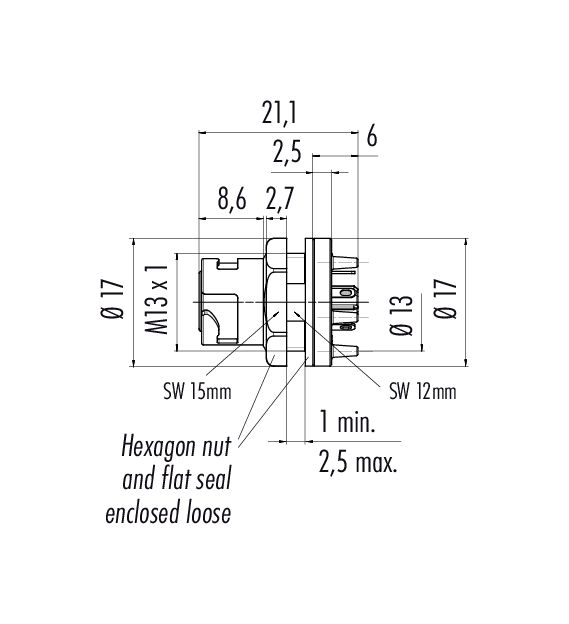 Bayoneta Toma de brida, Número de contactos: 5, sin blindaje, soldadura, IP54 desenchufado, M13x1,0, Montaje en pared