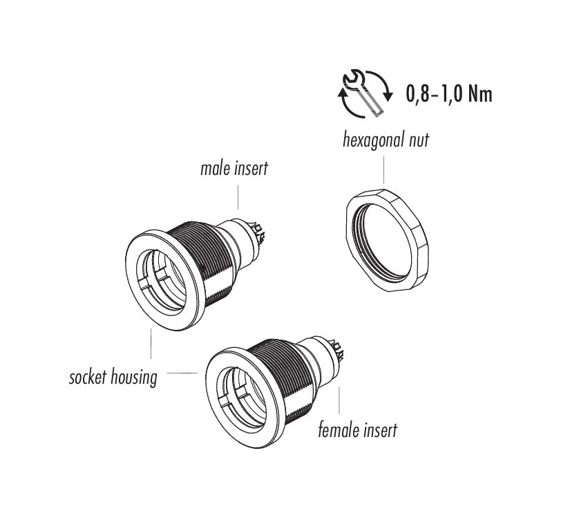 - Los conectores que se utilizan en circuitos con voltajes peligrosos al tacto sólo pueden ser instalados y utilizados por, o bajo la supervisión de, personas con formación en ingeniería eléctrica, teniendo en cuenta las normativas y normas aplicables.