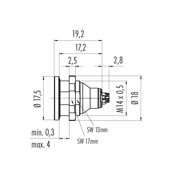 Push Pull Enchufe de brida, Número de contactos: 4, sin blindaje, soldadura, IP40, M14x0,5, Montaje frontal