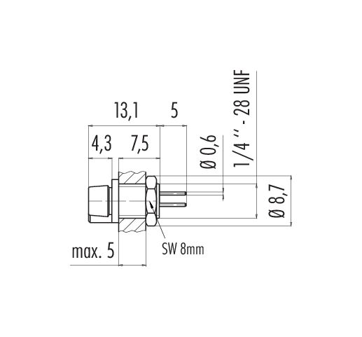 Snap-In Toma de brida, Número de contactos: 4, sin blindaje, THT, IP40, 1/4" 28 UNF, Montaje frontal