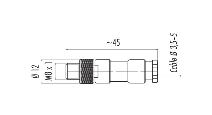 M8 Conector de cable macho, Número de contactos: 3, 3,5-5,0 mm, sin blindaje, soldadura, IP67, UL 2238