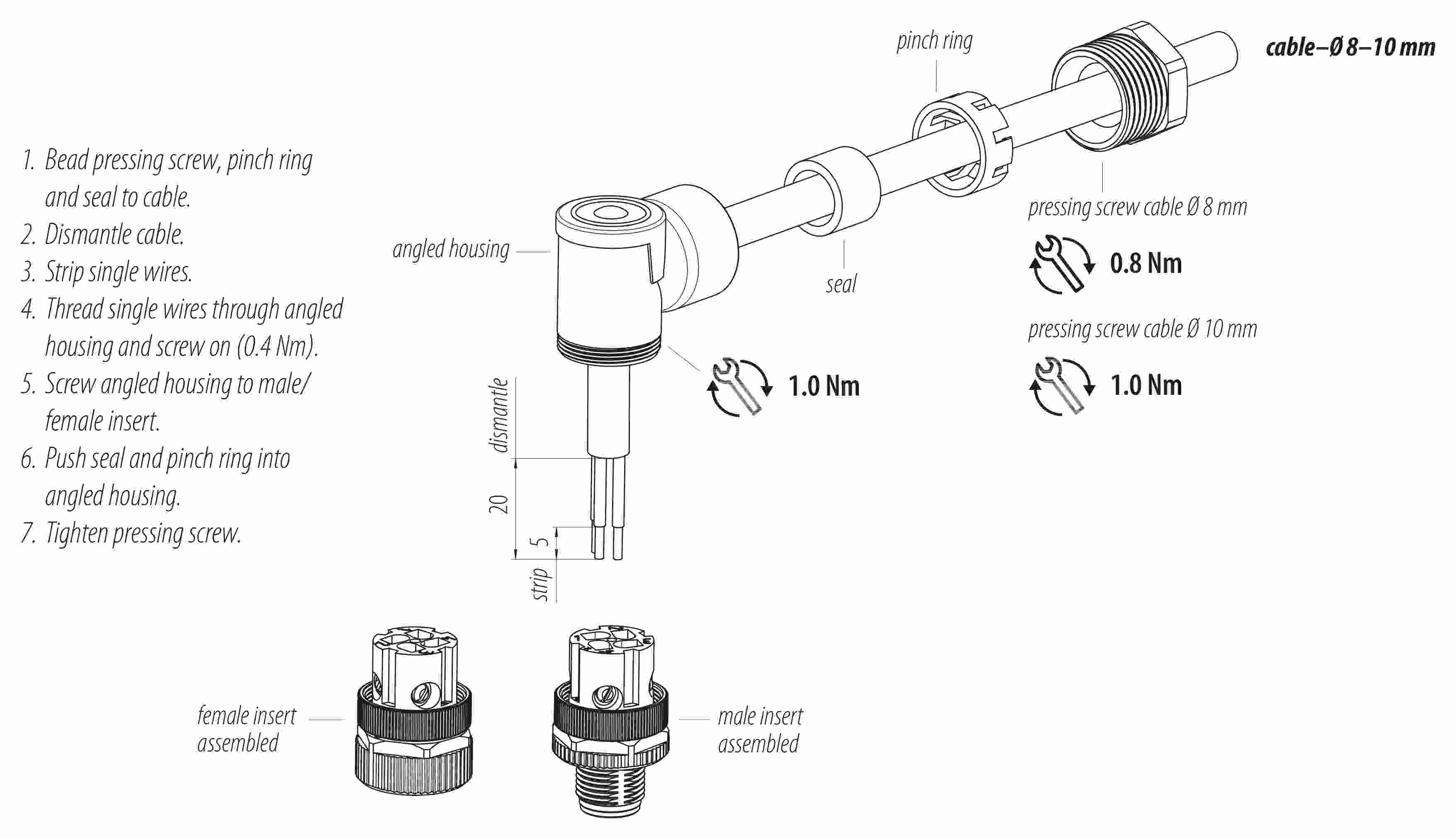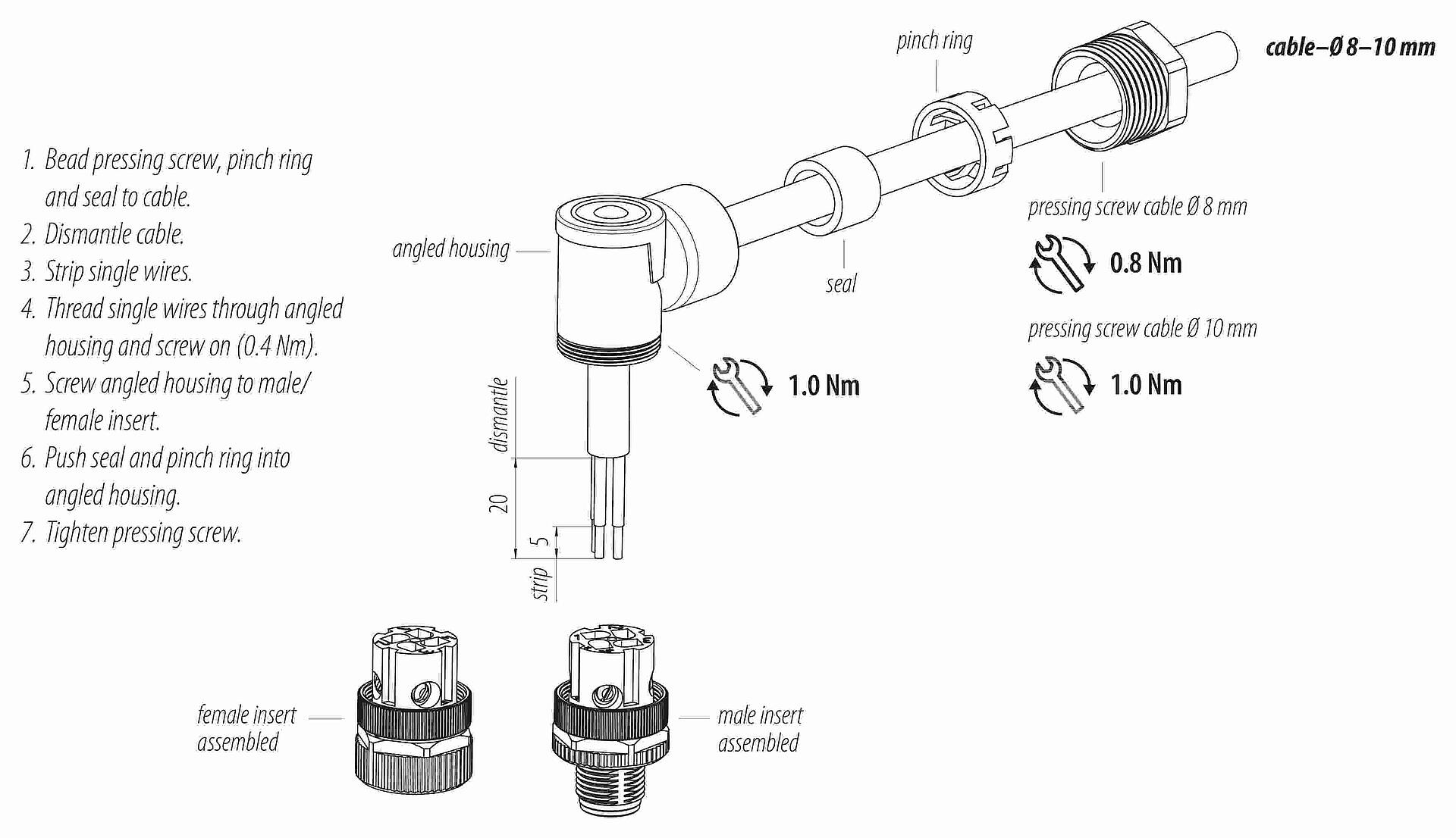 - Para proteger contra la apertura involuntaria del conector, la rosca entre la carcasa y la cabeza del conector debe asegurarse con un adhesivo de cianoacrilato adecuado cuando se use en circuitos con voltajes peligrosos al tacto. Esto no se aplica a los conectores utilizados en circuitos SELV y PELV según IEC 61140 (EN 61140, VDE 0140-1).