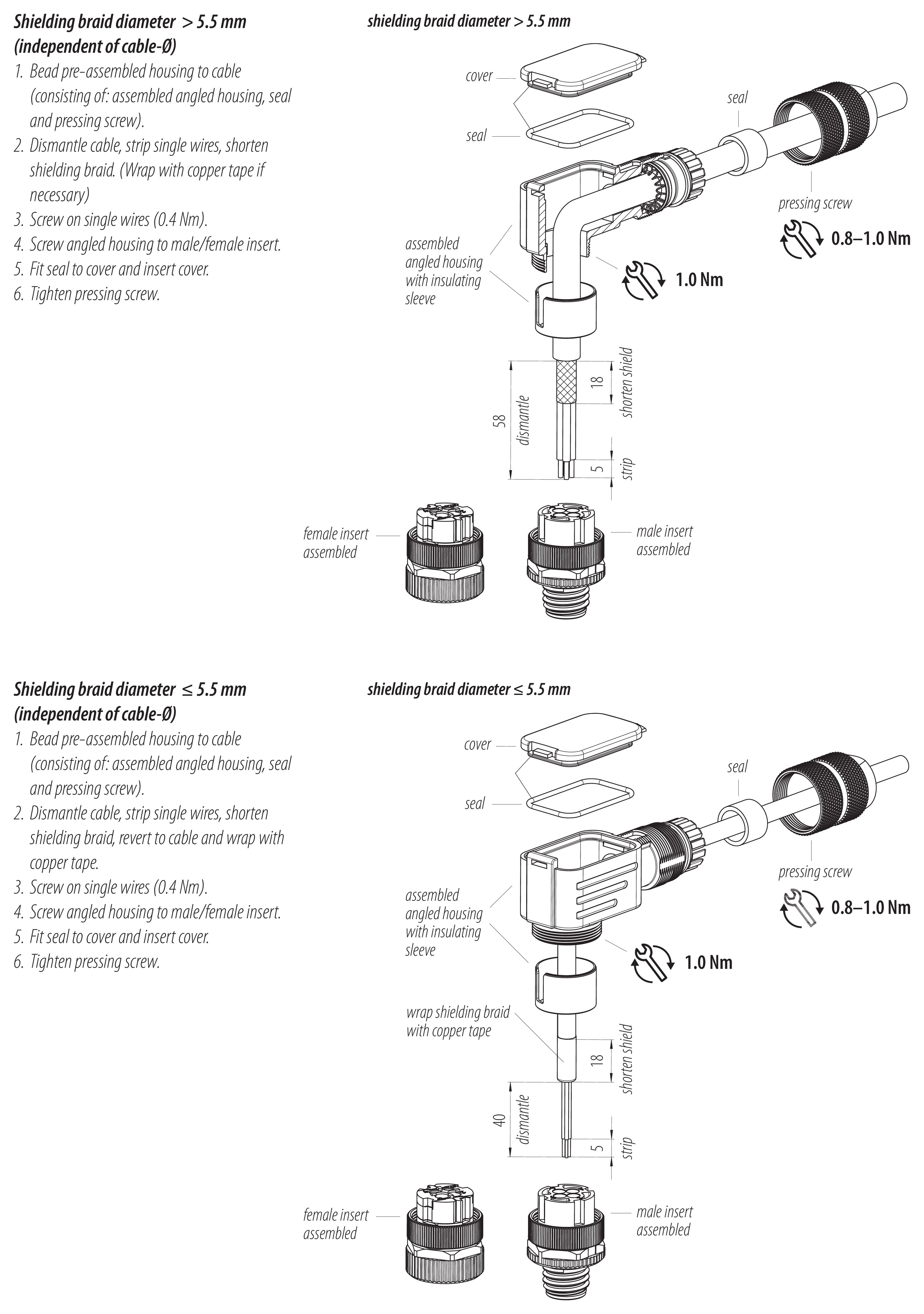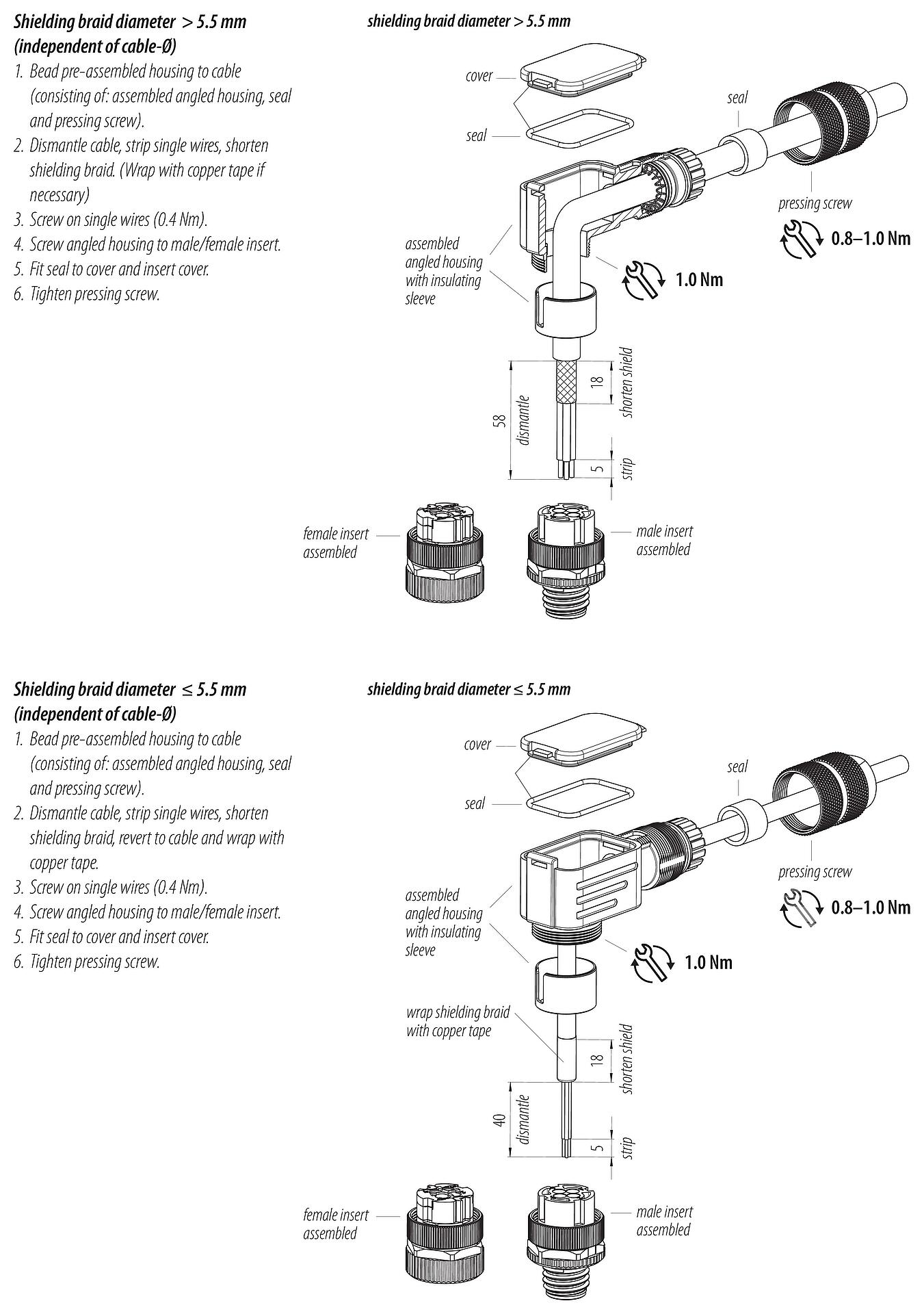 - Para proteger contra la apertura involuntaria del conector, la rosca entre la carcasa y la cabeza del conector debe asegurarse con un adhesivo de cianoacrilato adecuado cuando se use en circuitos con voltajes peligrosos al tacto. Esto no se aplica a los conectores utilizados en circuitos SELV y PELV según IEC 61140 (EN 61140, VDE 0140-1).