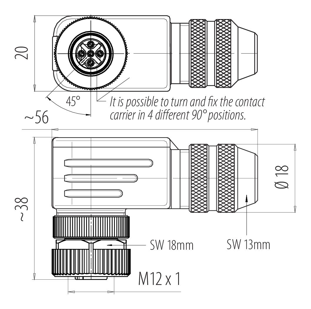 | Versión | Conector hembra en ángulo |